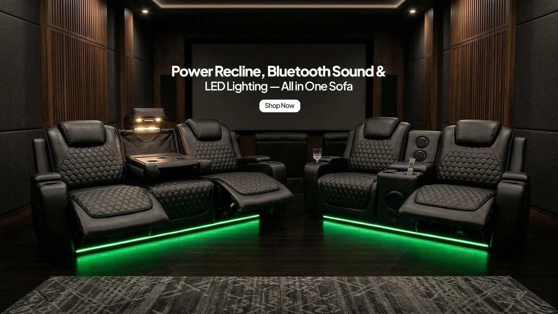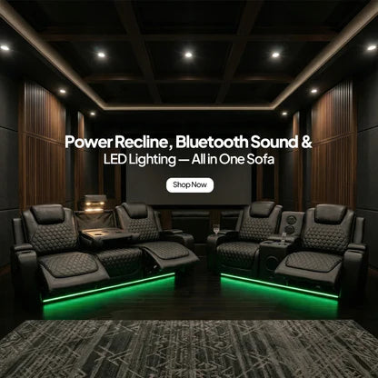 Michigan Leather 3+2 Seater Electric Recliner Sofa – LED Lighting, Cupholders, USB & Type-C Ports, Wireless Charging & Woofer Speakers