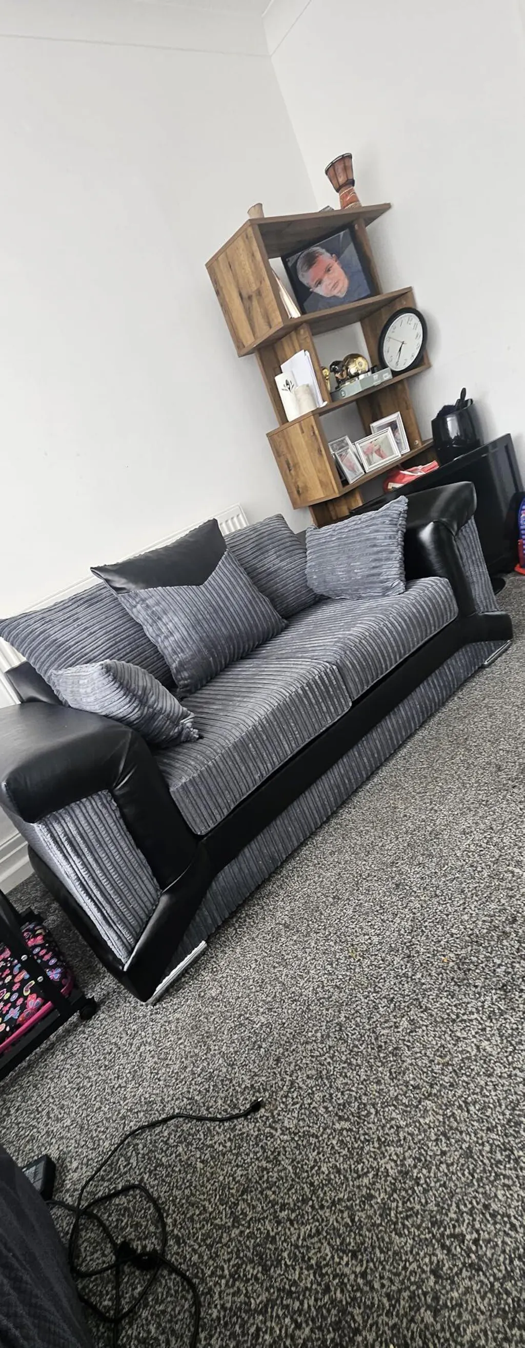 sleepkings Dino 3 Seater 2 Seater Upholstered Combination Fabric Black Grey (Black & Grey, 3+2 Seater Set)