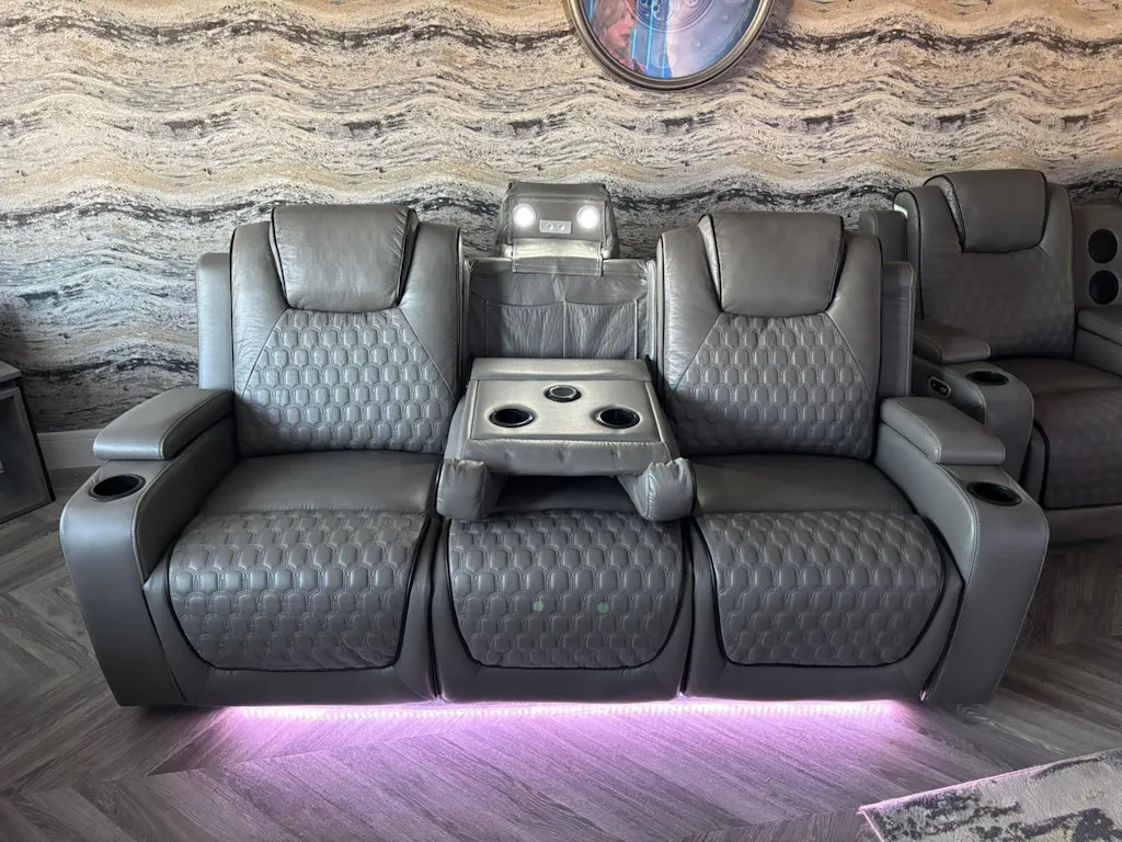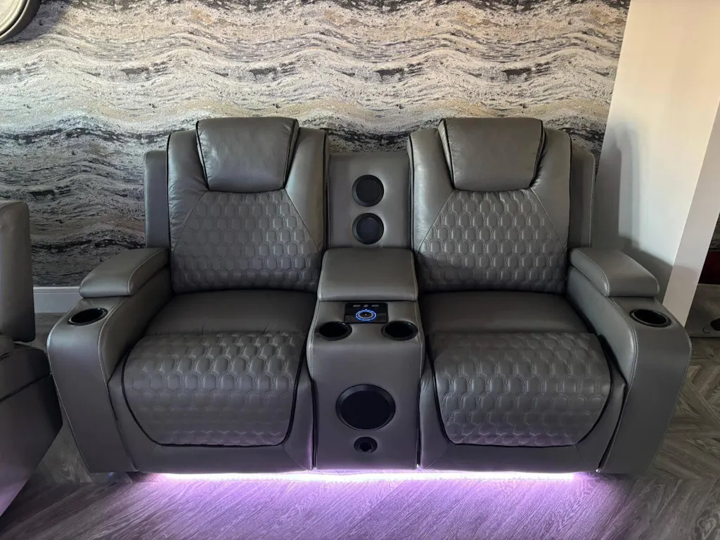 Immersive Bluetooth Sound System: The 2-seater "Loveseat" includes High-Fidelity Bluetooth Speakers integrated into the centre console for a wireless surround-sound experience.