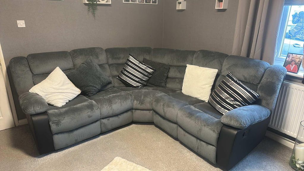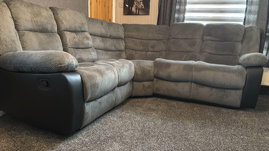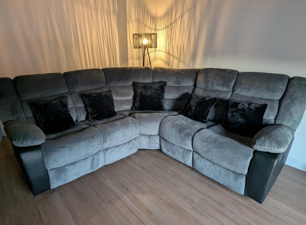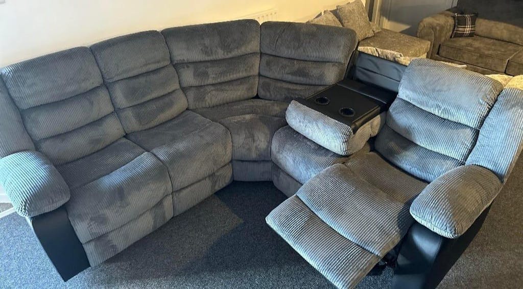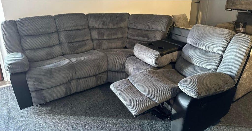 Rio Jumbo Cord Recliner Corner Sofa With Cupholders - Manual Reclining - Recliner Corner Sofa (Corner - Grey/Black)